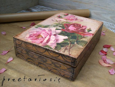 Wszystkie moje prace do tej pory wyłącznie powstawały na drewnie, pudełka małe i te duże, deski, deseczki, ramki, wszystko co idealnie nadaję się do przetarcia, odrapania i jak wydawało mi się do tej pory jest zdecydowanie bardziej plastyczne w obróbce.